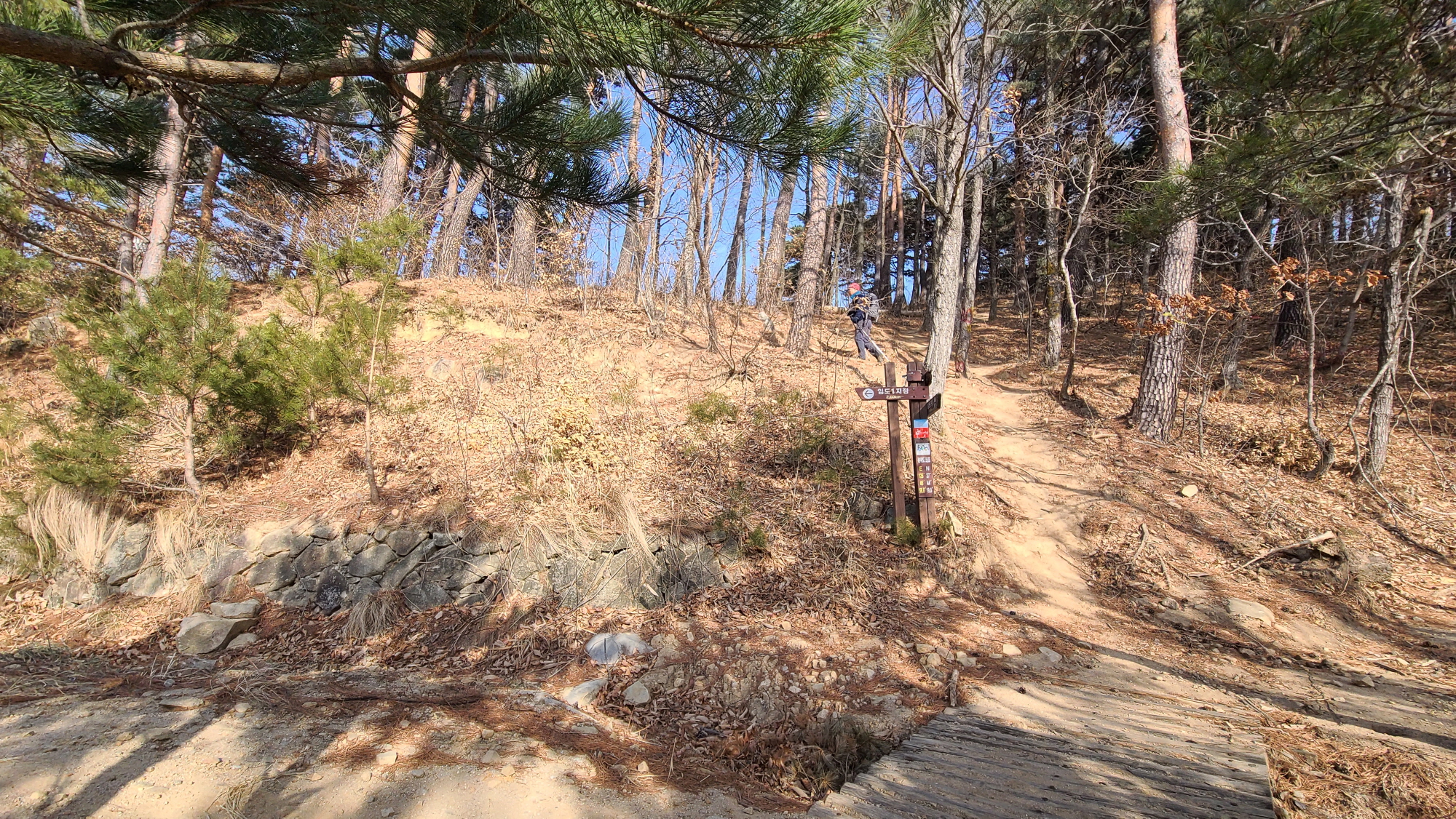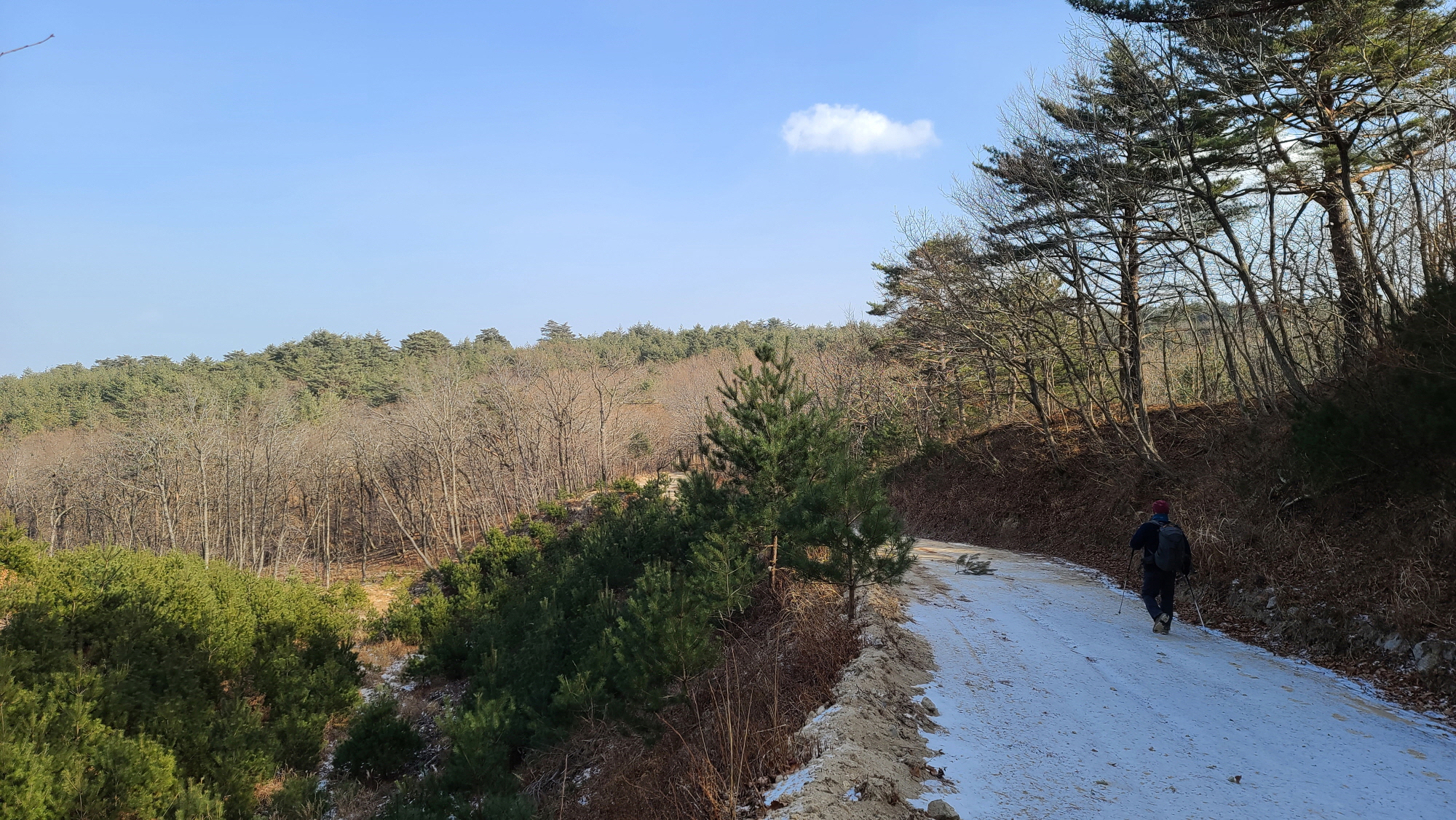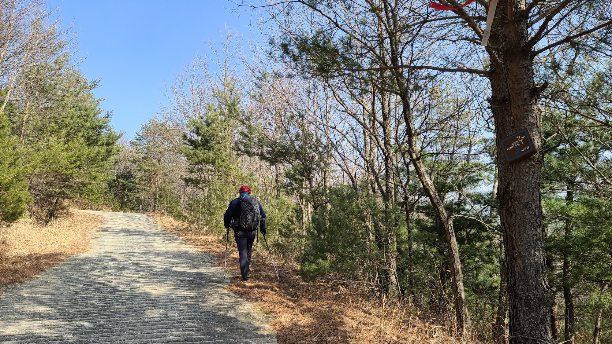 - 우린 명주군왕릉에 차를 세우고, 마을버스를 타고 보현사종점까지 갔다. 그곳에서 마을길을 따라 3~4km 보현사를 향해 걸어가면 아리바우길 입구가 보인다. 그곳부터 술잔바위까지는 오르막이고, 다음부터는 평탄한 내리막 숲길. 감시초소 다음부터는 임로를 따라 내려온다.