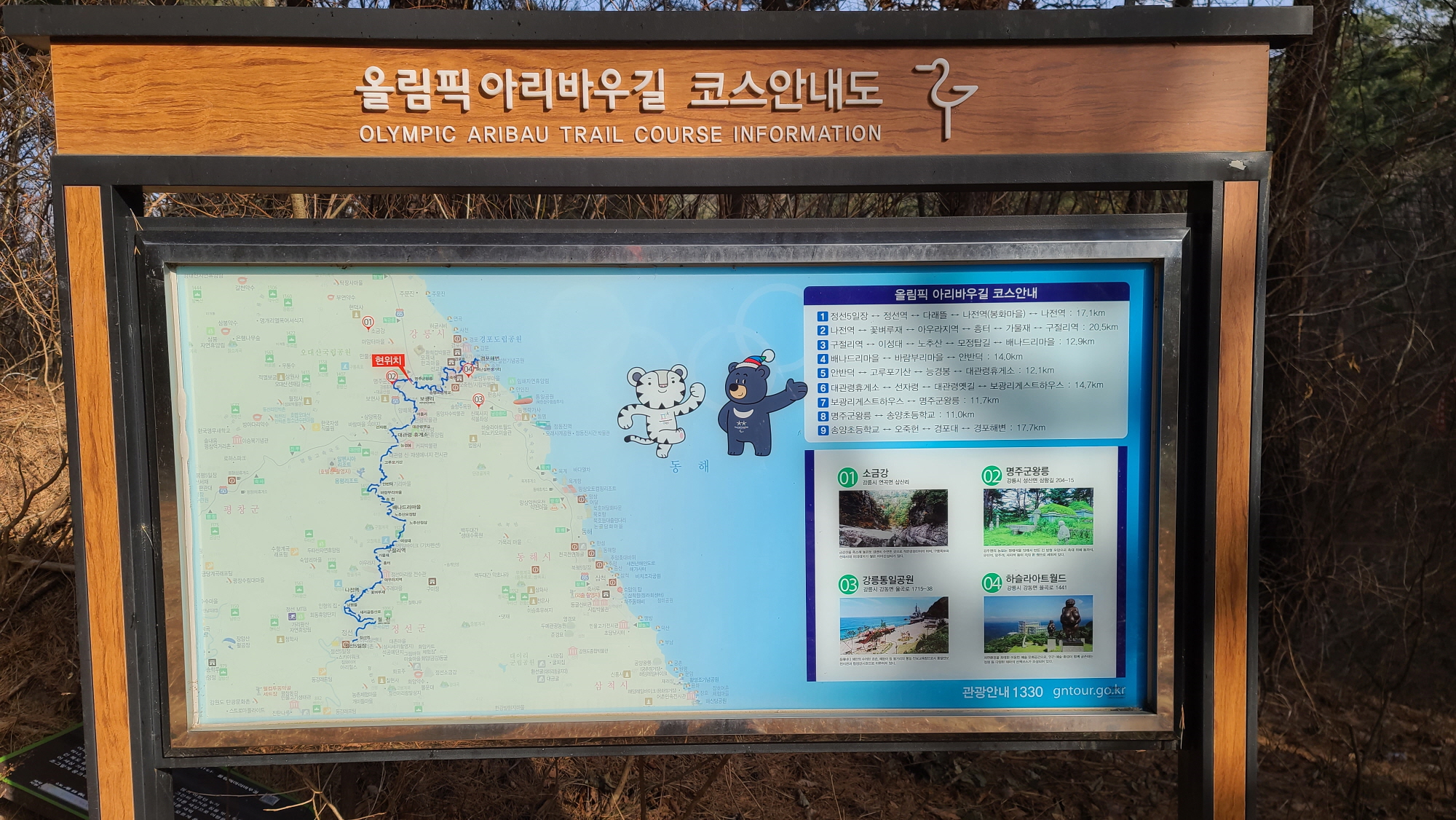 -아리바우길은 위와 같은 표식 2개나 혹은 파랑과 하얀색 길표식기를 따라 가면 된다. 곳곳에 안내가 잘 되어 있어 길을 잃거나 혼돈을 일으킬 염려는 없다.