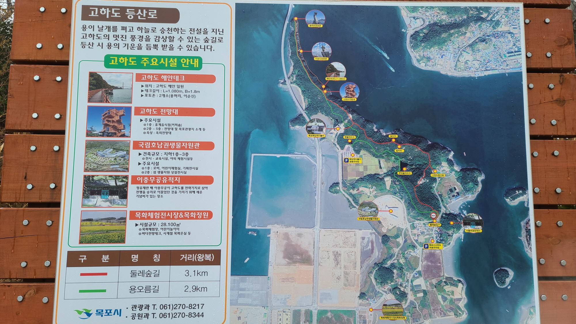 - 고하도 둘레길은 아주 길을 잘 만들어 놓았고, 용머리부터는 해안데크도 잘 놓여 있다. 21년 1월 현재는 아직 해안데크가 다 완성되지 않아서, 전망대로 다시 올라왔다가, '용오름길' 둘레길로 되돌아 오도록 되어 있었다.