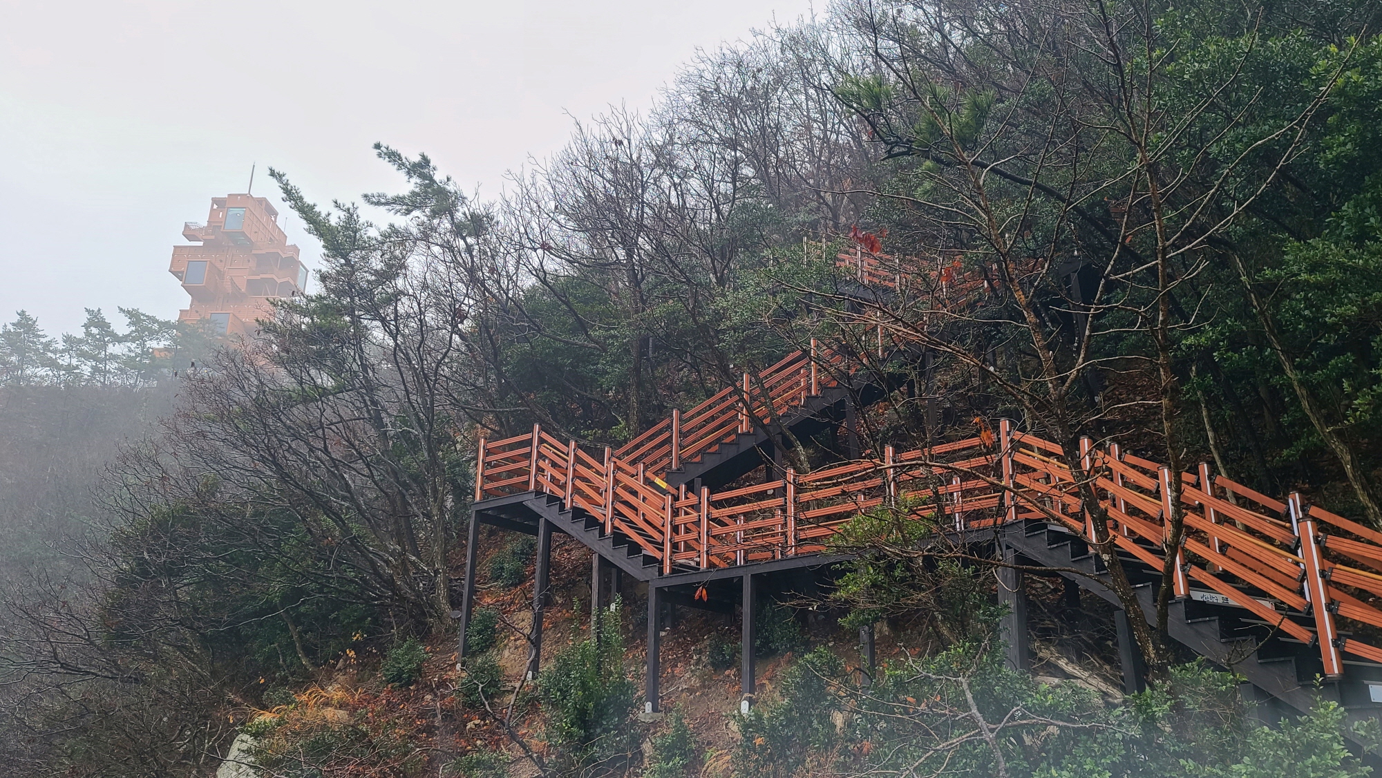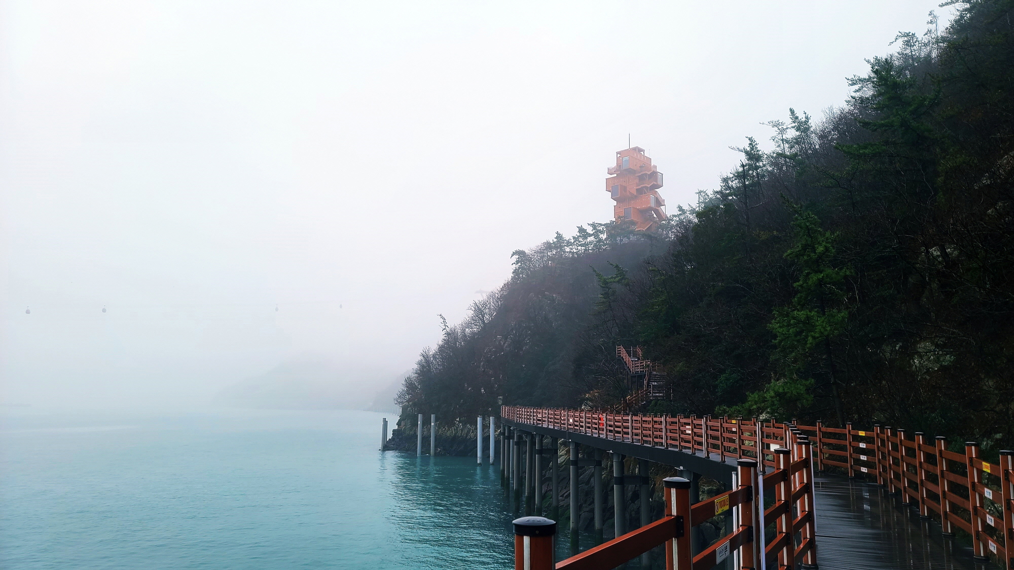 - 빨간 선' 둘레숲길' 로 갔다가. 해안데크를 따라 걷고, 다시 전망대로 올라. '용오름길'로 되돌아 오면 된다.