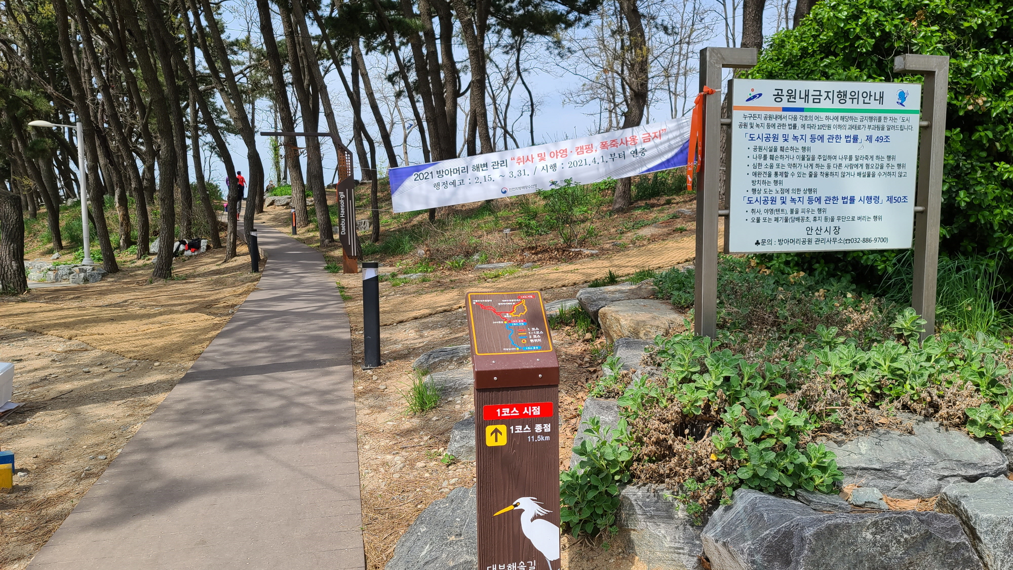 관광안내소 주차장 옆으로.해솔길 1코스 시작점
