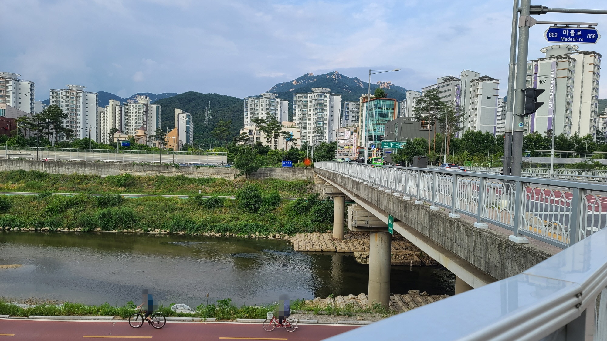 상도교를 건너 서울창포원 방향으로 도로를 따라 걷는다