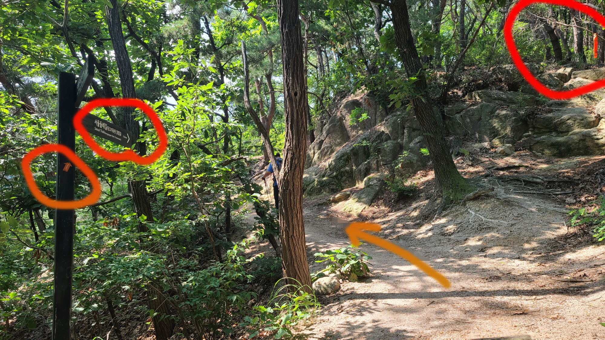 둘레길이라 군데군데 정상으로 가는 입구들과 만나고, 체력단련장, 공원 등과 만나기도 한다.