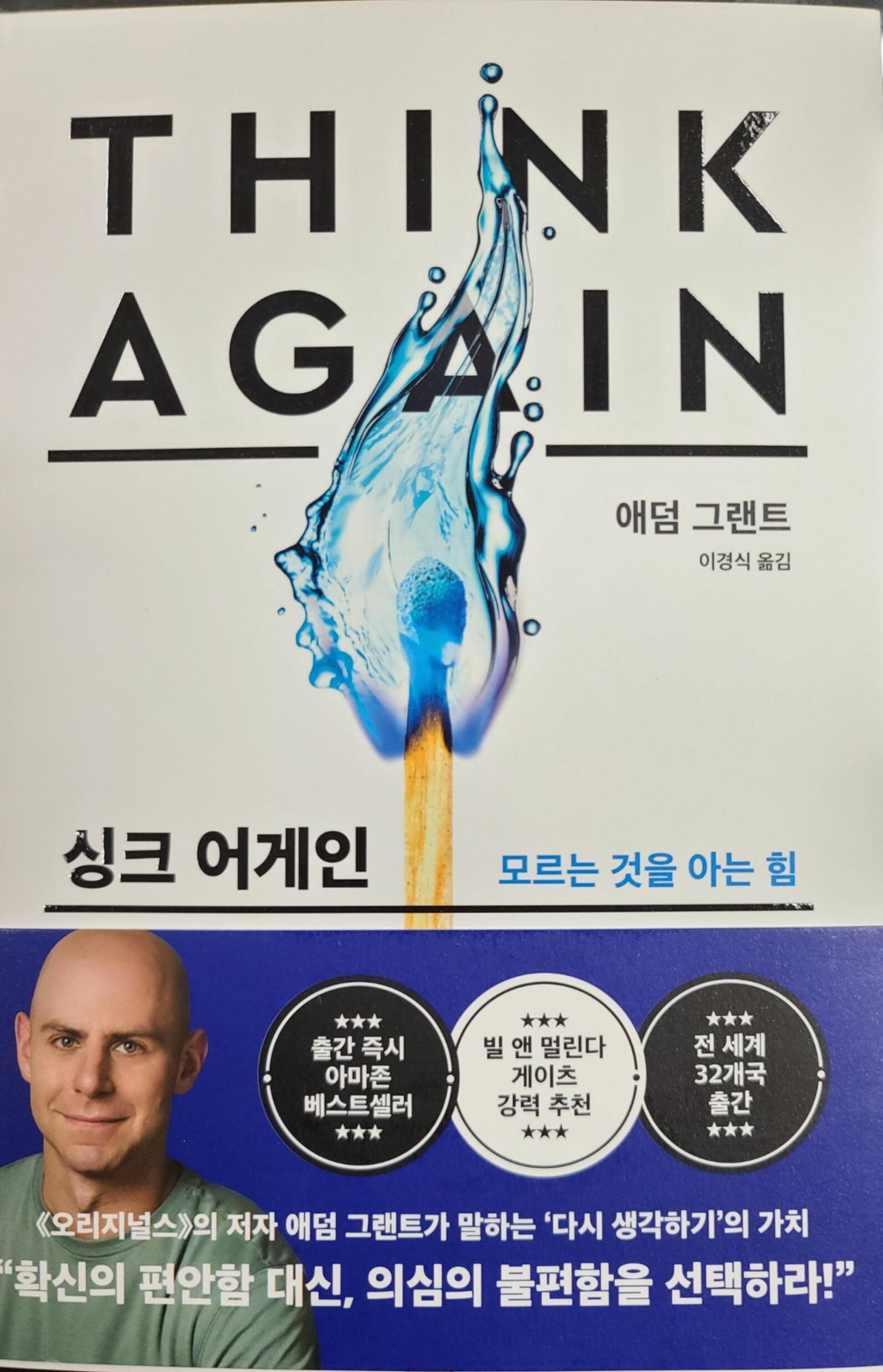 전작 《오리지널스》에서 대세에 순응하지 않고, 시류를 거스르며, 구태의연한 전통을 거부하는 새로운 유형의 인재상을 제시했던 애덤 그랜트가 이번에는 《싱크 어게인》에서 지금까지 가지고 있던 자신의 모든 믿음과 지식을 의심하라고 또 한 번 우리를 도발한다. 언제나 우리의 통념과 상식을 뒤집으면서 새로운 세계관을 보여주었던 그는, 이번에도 여지없이 우리의 지식 체계를 무너뜨리고 신선한 사고와 개념을 불어넣으며 ‘다시 생각하기’라는 매우 중요한 사고법에 대해 고찰한다.
