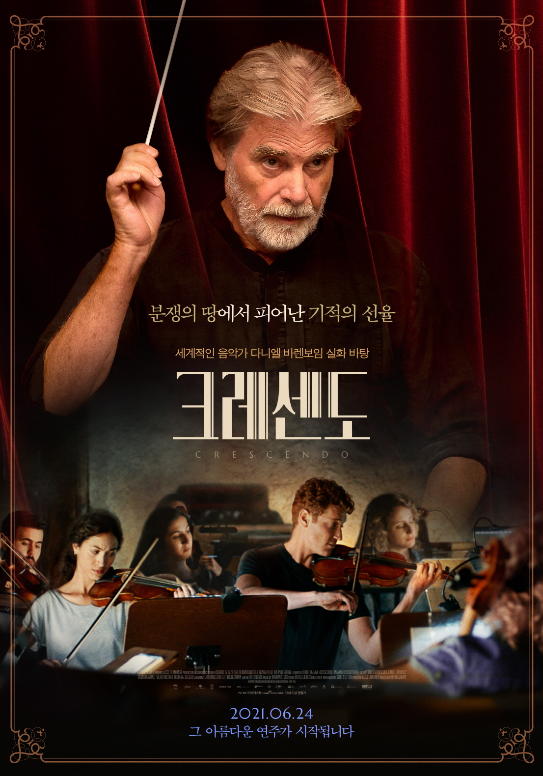 <크레센도>는 세계적인 지휘자 ‘에두아르트’와 함께하는 평화 콘서트를 위해 모인 이스라엘과 팔레스타인의 젊은 음악가들이 깊은 갈등을 극복하며 화합의 멜로디를 만들어가는 이야기를 그린 영화이다.