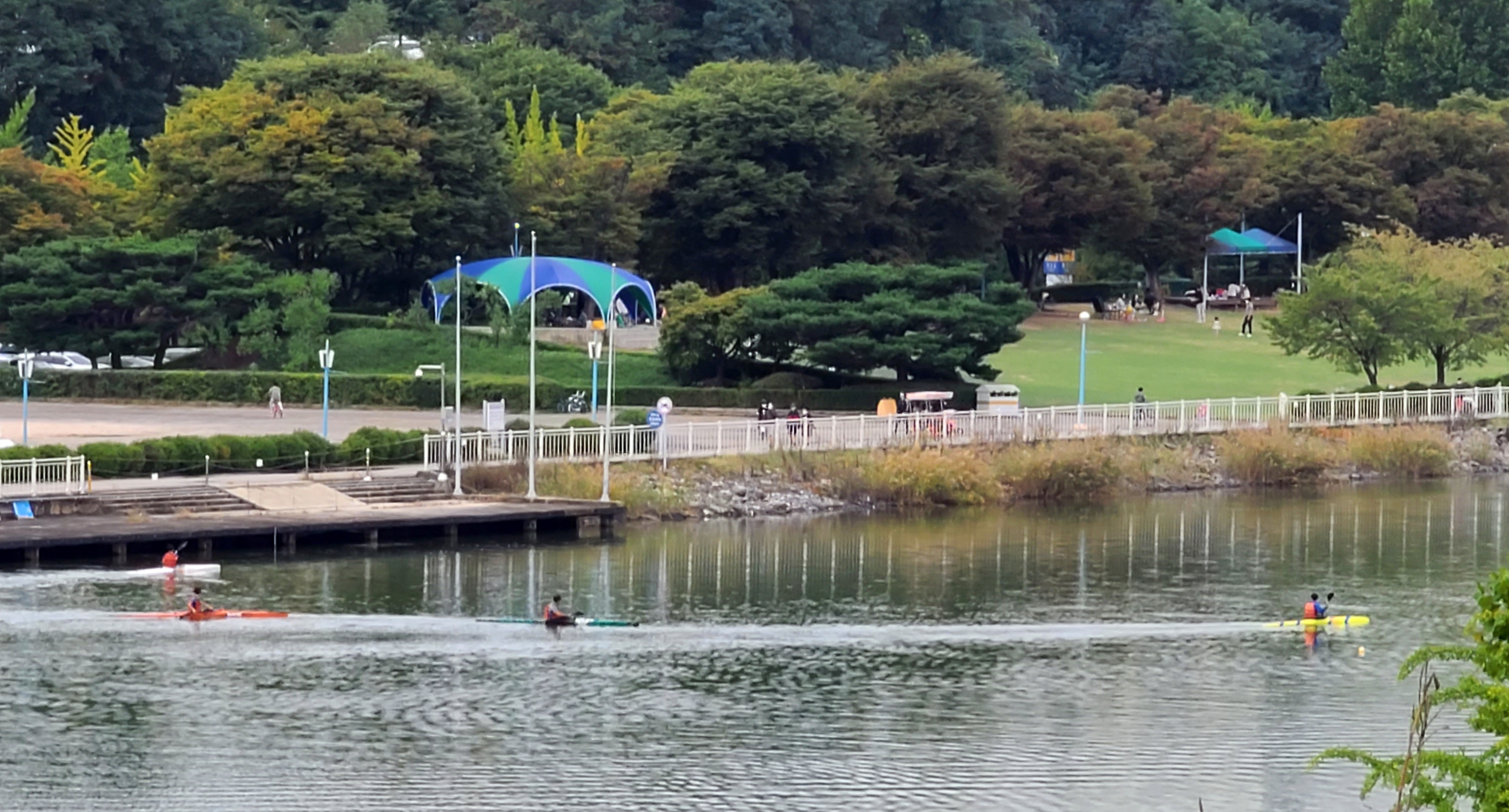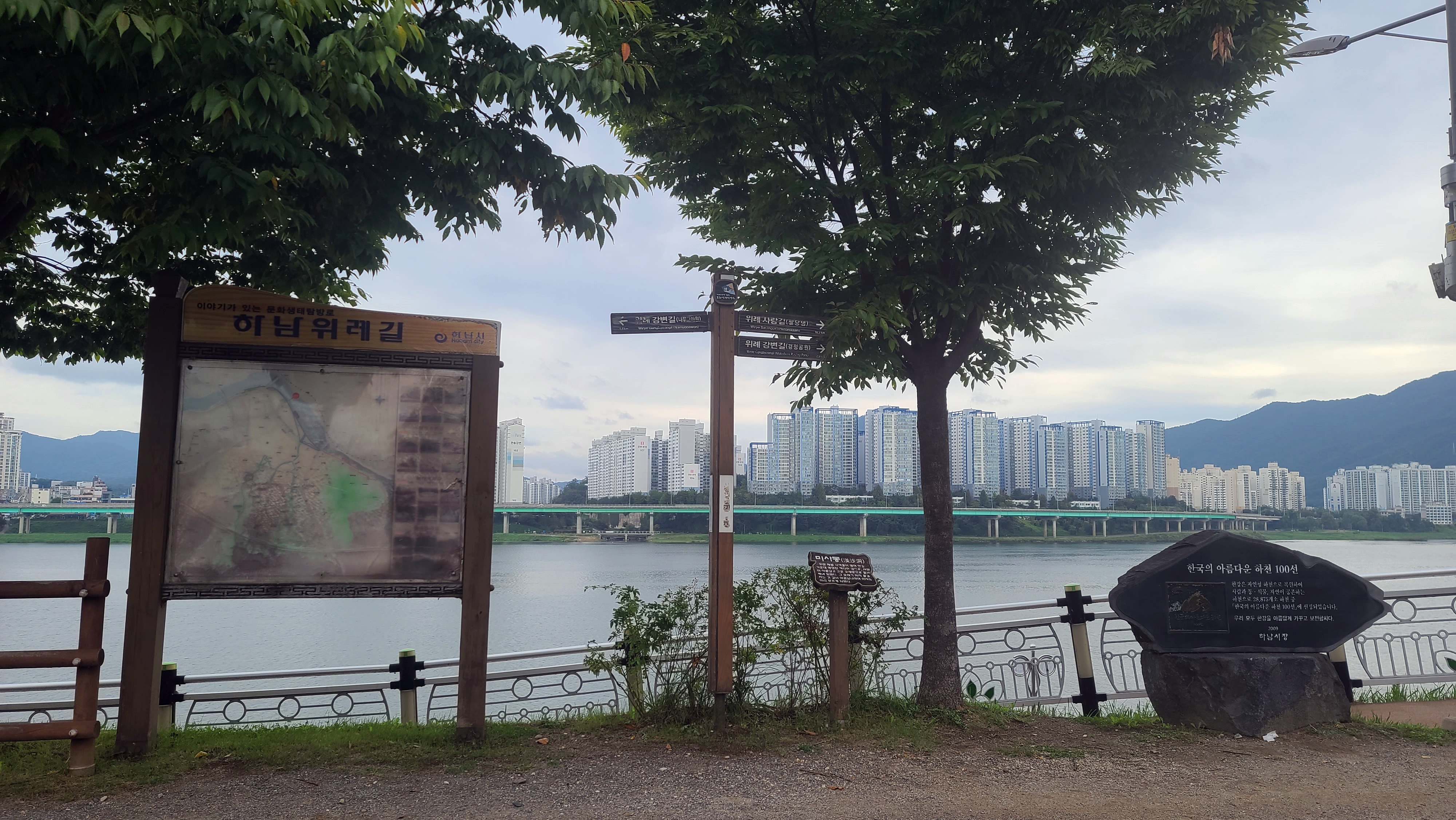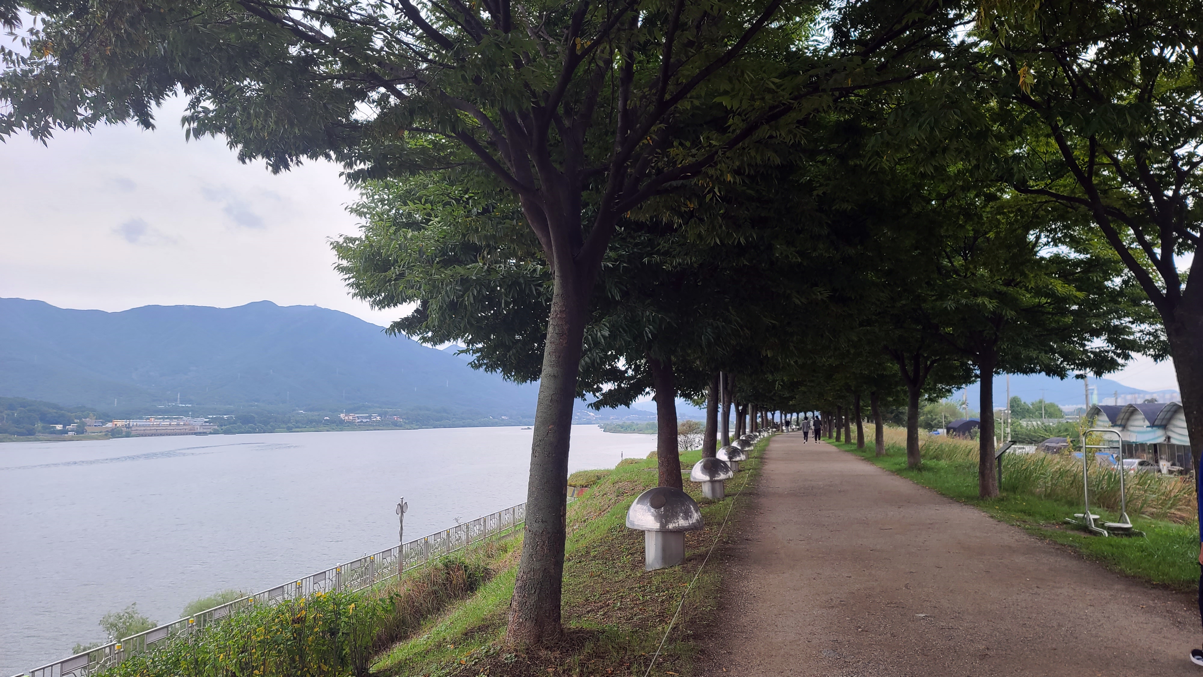 - 한강을 바라보며 쭉 뻗은 가로수길을 걷는 기분이 아주 좋다. 비오는 날에도 걷기 좋을 정도로 잘 다져져 있다.