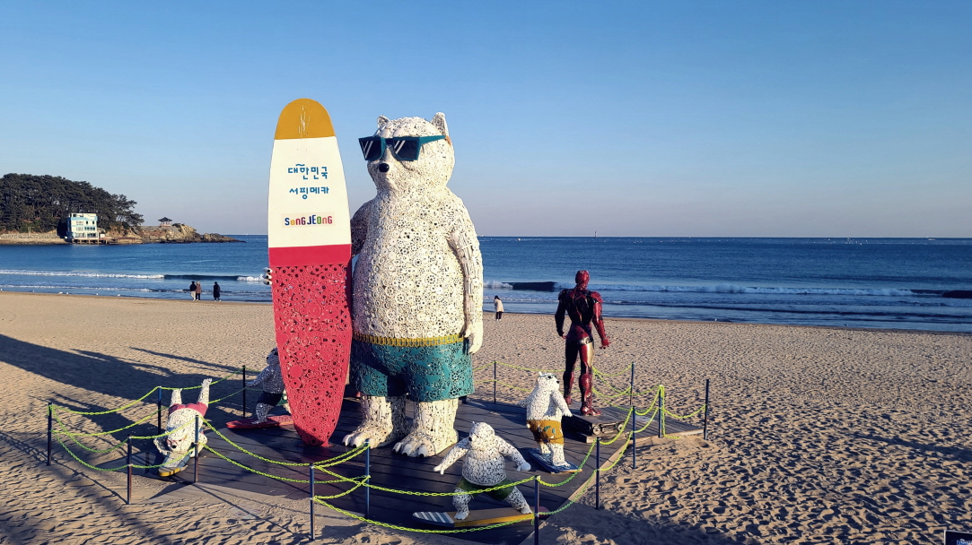 송정역 안쪽 (근대 역사 건축물에 등록되어 있다고 한다.)멀리 청사포 다릿돌 전망대 스카이워크가 보인다.송정해수욕장은 써핑의 천국으로 젊은 사람들에게 인기가 높다고 한다.송정해수욕장