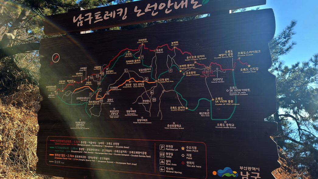 - 동백섬을 순환도로를 따라 한바퀴 둘러보고 , 다시 해파랑길을 따라 해운대로 향한다.