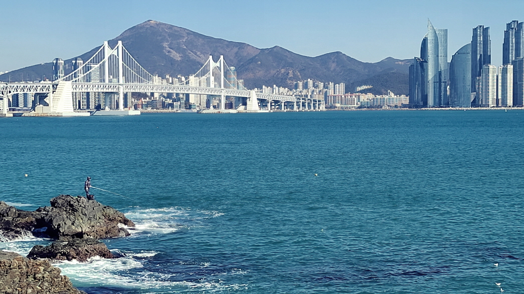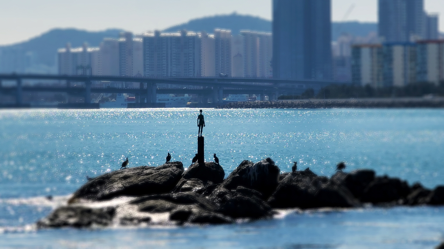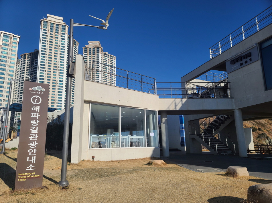 바다 낚시를 즐기는 강태공해파랑길 (걸어온 길을 뒤돌아 사진을 찍은 것)여기서부터는 도로를 따라 걸어야 한다. 찻길 옆....음...좋지 않아. ㅜ ㅜ드디어 광안리 해수욕장!도로에서 위 사진처럼 위로 올라가면 <민락 수변공원> 이 나온다.