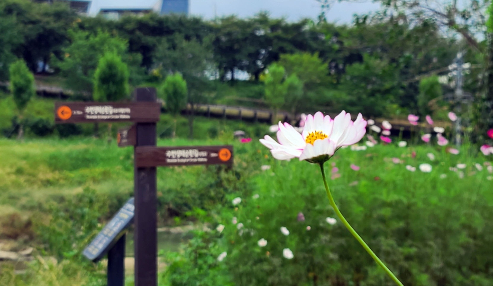 뚝방의 산책로로 걸을 수 있어 걸어서 가는 둘레길도 나름 좋았다.