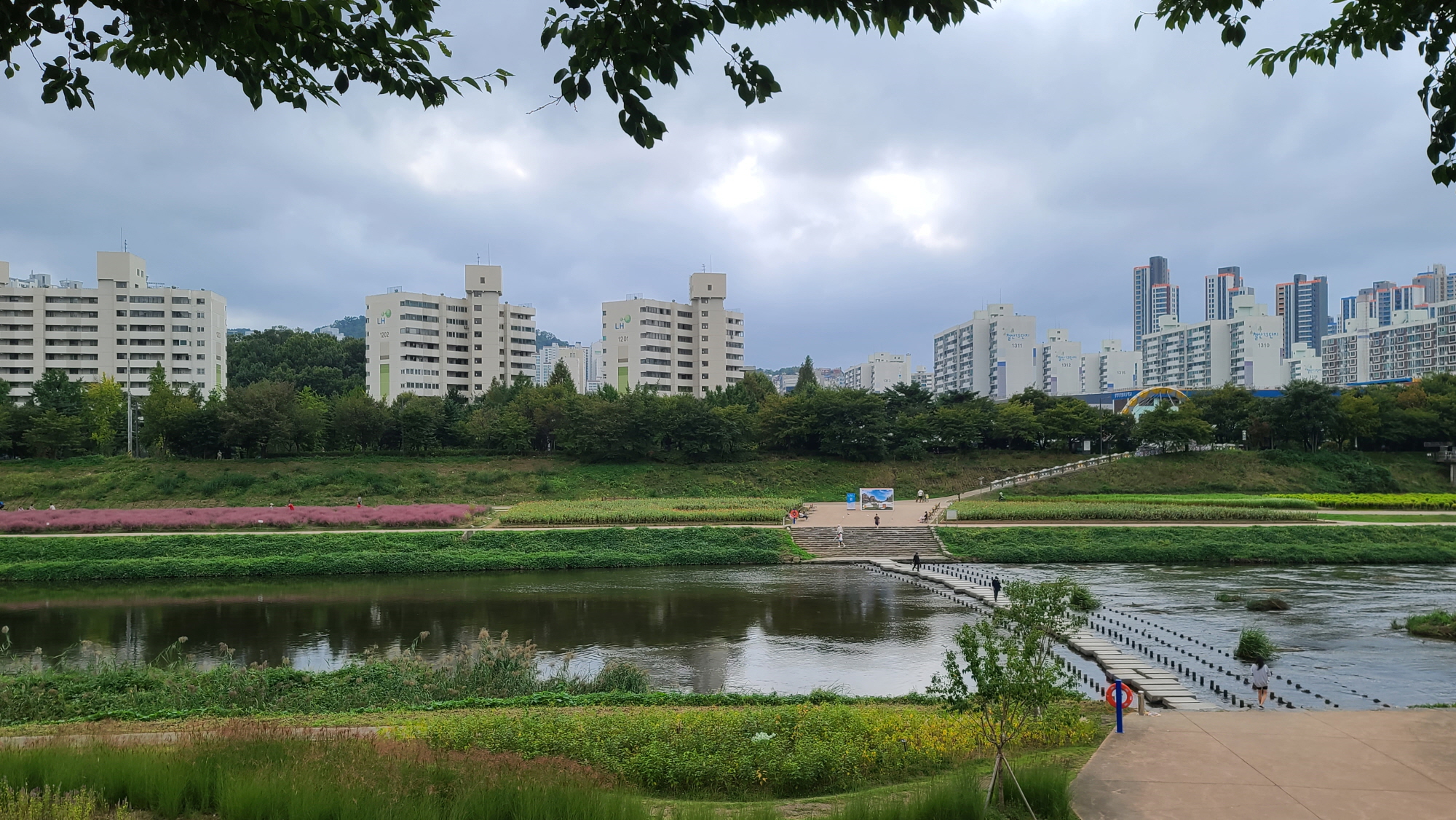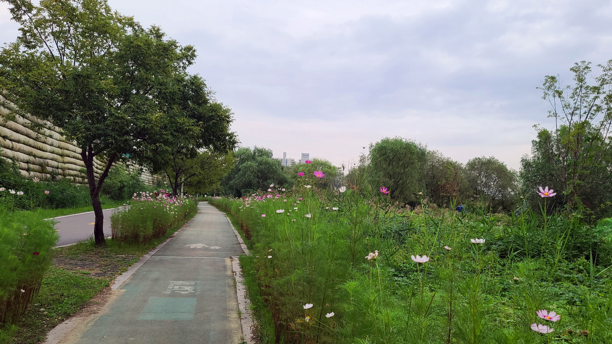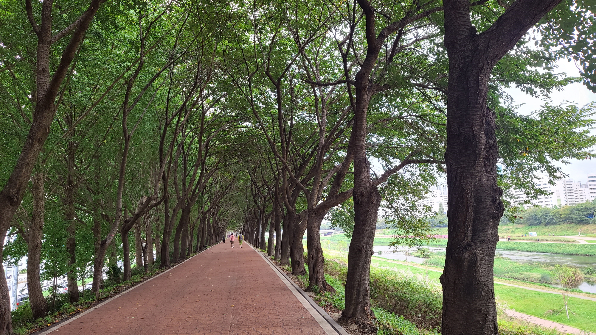 그래서 여름에는 걷기가 힘들고. 안양천 뚝을 따라 가로수로 심어진 벚나무들로 인해 벚꽂이 만발한 4월 초가 가장 아름답다. 난 10월에 녹음이 우거진 날, 날씨가 흐려서 해가 없는 날 걸었다.