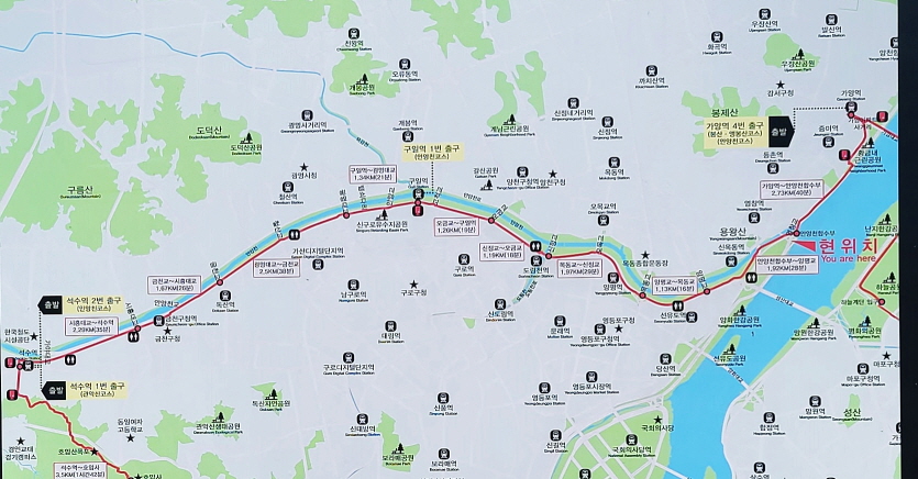 - 석수역 -> 안양천 -> 구일역 (스탬프) ->안양천 -> 한강 ->강서둘레길 -> 가양역 (사진소개는 역방향으로 됨)