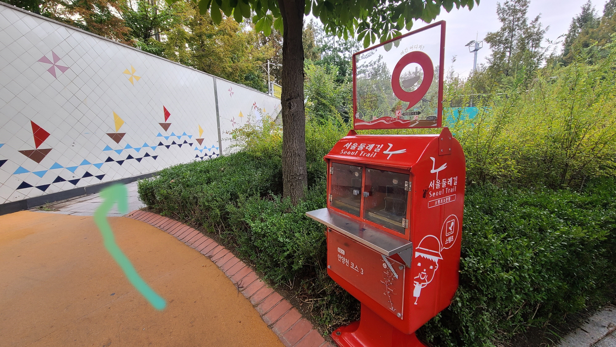 (난 역방향으로 가양역에서 강서둘레길 산책로를 따라 걷다가 , 세현고등학교과 염강초등학교 뒤로 난 한강으로 나가는 공원길의 시작점에서 스탬프를 찍고 출발했다. )