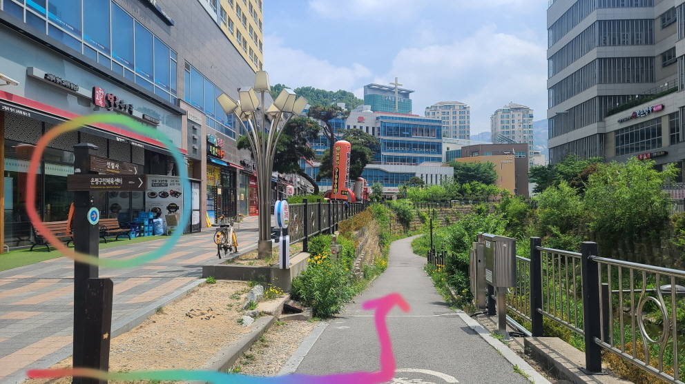 그래서 구파발역에서 횡단보도를 건너, 직진하니. 아래사진과 같은 하천길 입구가 나왔다.