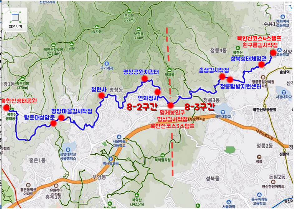 (서울둘레길 8코스 일부구간은 은평둘레길과 겹치고, 북한산 둘레길과 겹친다. )