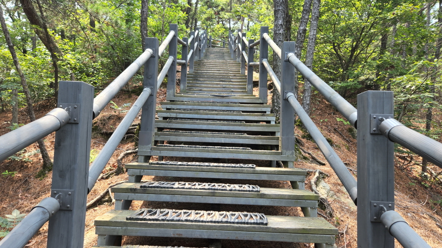 - 폭포앞에서 데크길을 버리고 정자가 있는 등산로를 따라 흙길로 오른다. (나중에 아주 끝에서 만나기는 한다.)