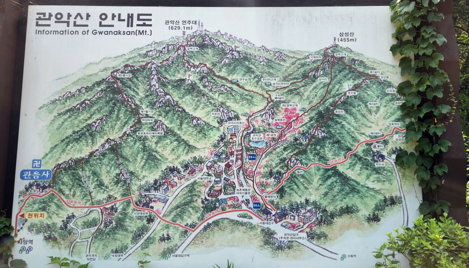 - 코스 : 사당역 4번 출구 -> 관음사 입구(스탬프 인증) -> 낙성대 -> 서울대학교 앞 -> 관악산 일주문