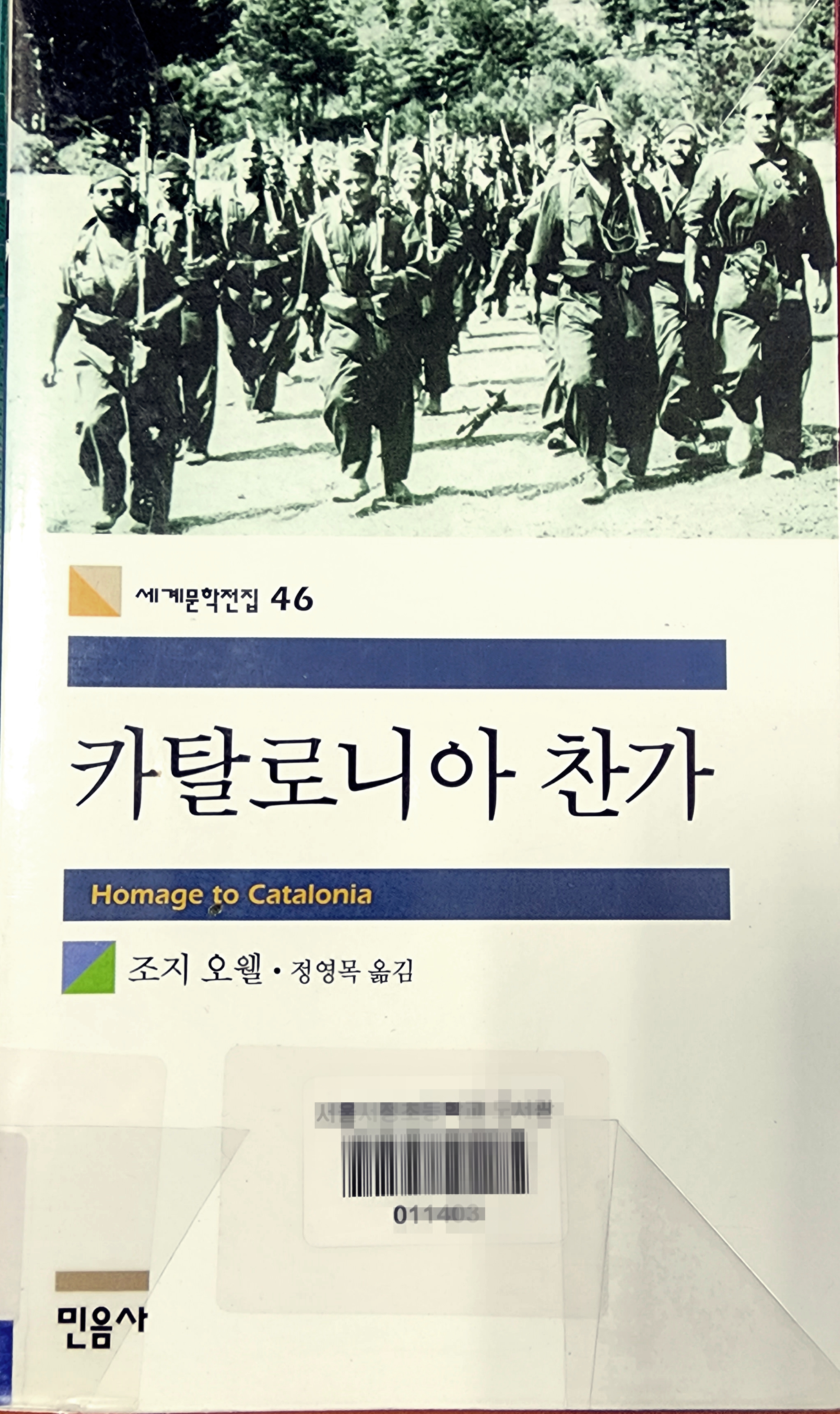 조지 오웰 소설『카탈로니아 찬가』. 조지 오웰을 20세기 가장 영향력 있는 목소리의 주인공으로 만든 역작이다. 스페인 내전과 1936년의 카탈로니아를 생생히 기록한 전쟁소설의 고전이다. 역사의 현장에서 정의와 평등을 위해 투쟁하는 실천적 양심의 기록이 담겨 있다.