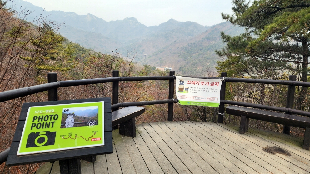 - 명상길 구간은 형제봉 능선 사이를 경유하는 곳으로 수평과 수직의 탐박이 적절히 배합된 곳이다.