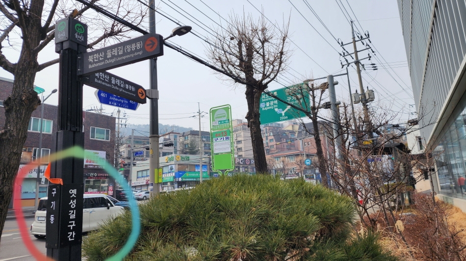 - 전에 한여름에 서울둘레길로 이길을 걸을 때 너무 힘들어 투덜거리며 겨우 걸었는데, 이번 둘레길로 걸을 때는 서울둘레길과 역방향인데다. 날씨가 추우니 마을길, 아스팔트길을 걸을 만했다.