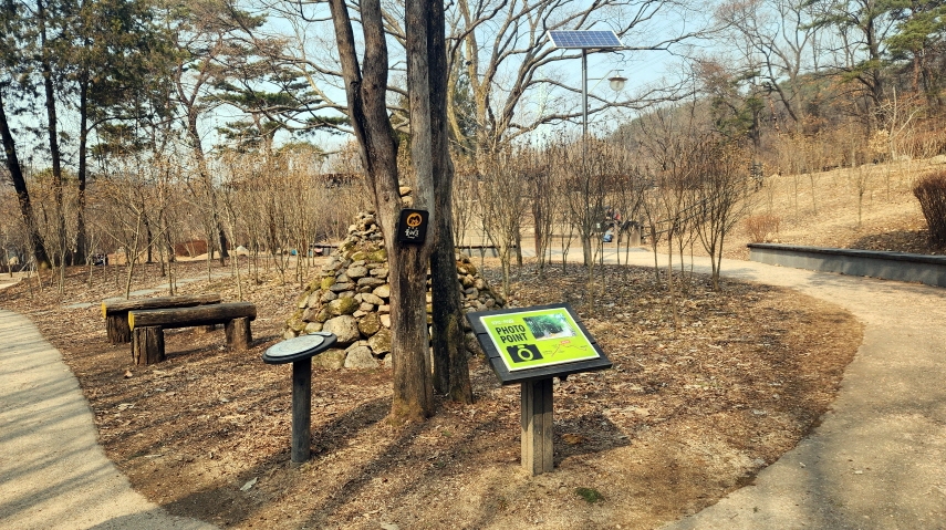 - 진관사가는 도로에서 위 표지판이 있는 곳 계단으로 내려서면서 은행나무가 있는 공원으로 간다. (포토존)