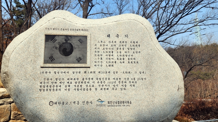- 진관사 태극기 기념비,(독립운동에 앞장선 지역이었음을 알려주는 자료라고 한다)