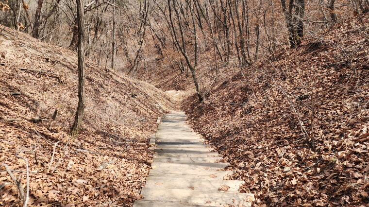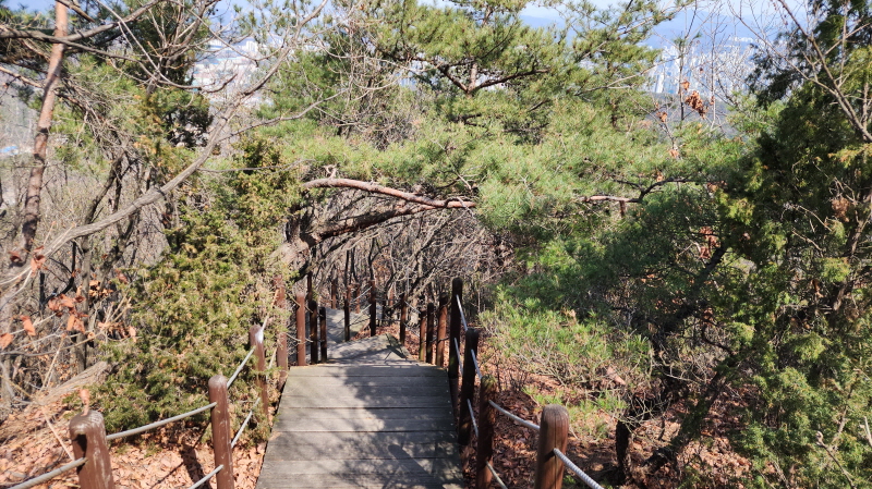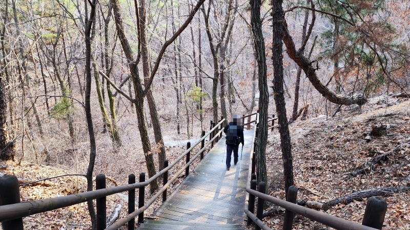 - 전망대까지 짧으나 다소 경사가 있는 데크로된 계단 오르막길.