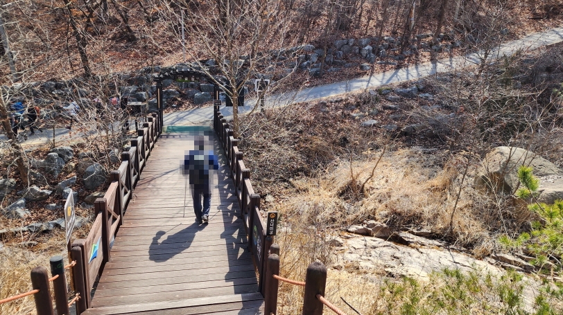 - 계곡을 따라 오르는 산길이라 다리를 여러개 건넌다.