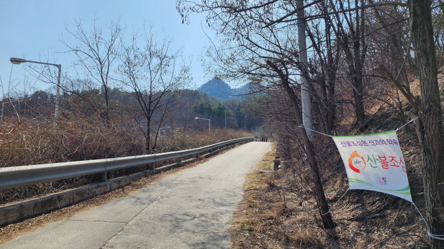 - 산넘이길이 끝나고 안골길이 시작되는 지점에서 큰길을 따라 마을쪽으로 조금 내려간다.