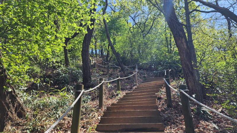 - 정상까지 가파른 나무 계단들...(높지는 않으나...)