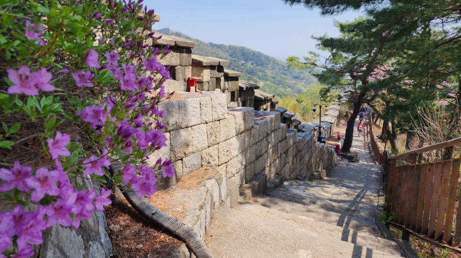 - 낙산구간은 경사가 완만하여 산책하듯 걷기에 적당하다. 축조 시기별 성돌의 모양이 어떻게 다른지 비교하면서 걷는 재미가 있다고.