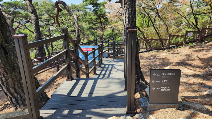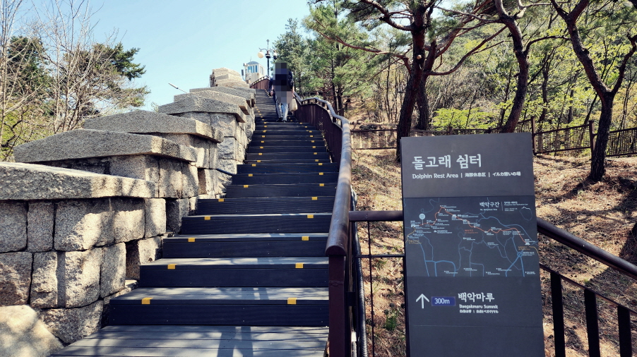 - 말바위전망대에서 데크를 따라 와룡공원(혜화문방향) 안내화살표를따라 가야 한다.