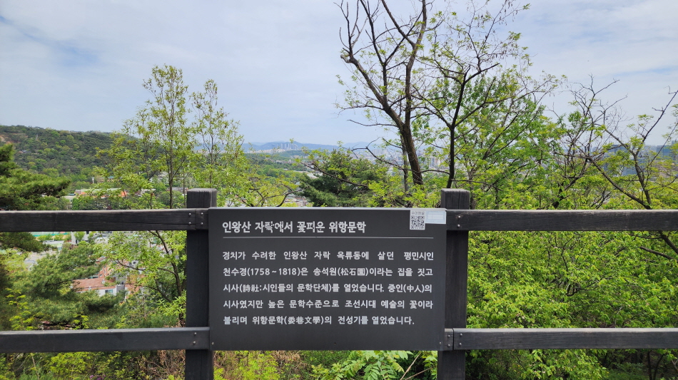 - 안내판을 따라 숲길을 걷다가 인왕산 전망대에 잠시 올라갔다, 내려왔다.