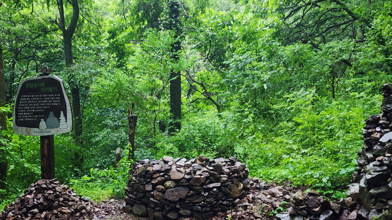 - 마을 뒷산 숲길로 이어져 있어 실제 위 절들은 보이지 않는다. 절들 뒷편 산길
