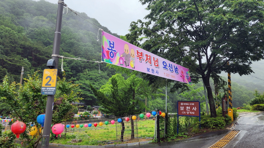 - 청심병원 -> 보현사 -> 현덕사 -> 체육쉼터(2.3km) 의 마을길이다, 포장도로...햇볕.