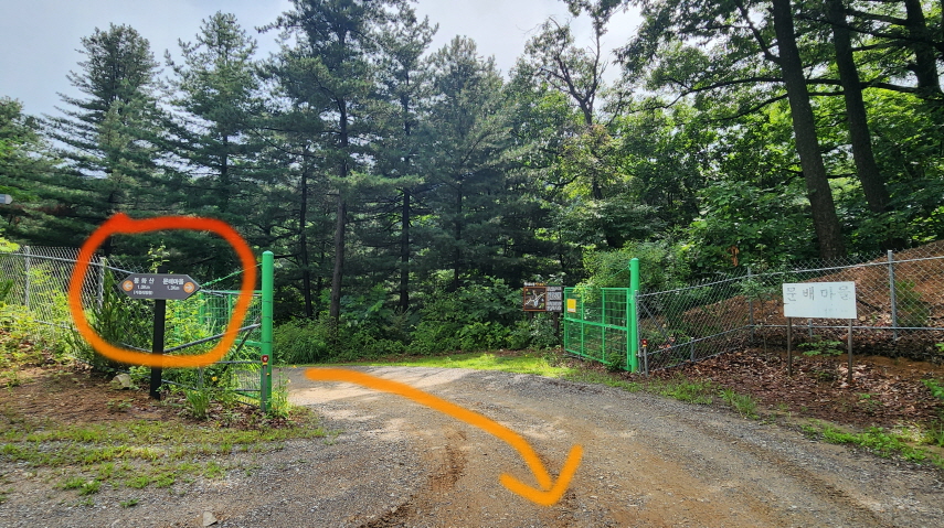 - 임로를 따라가다 이런 철조망 문이 왼쪽으로 나 있어, 처음에는 그냥 지나가려 했다가 안내문을 보니, 맷되지등 야생동물 침입을 막는 철망문이라고 씌여있다. 문을 열고 들어간후 잘 닫으시오~~~