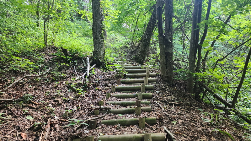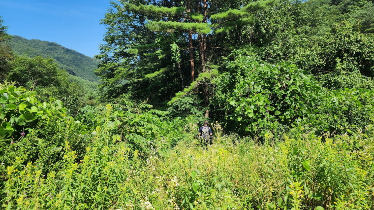처음 만들 당시는 아름다웠는지 모르겠으나, 폭우의 장마도 있고 하여 그런지 숲길이 잡초가 무성히 자라 길을 찾을 수 없는 곳도 두어곳 있었다. 음...아름다운 숲은 오지의 생태보존이 잘된 원시림 상태인 경우를 말하나 보군...하며 투덜투덜.