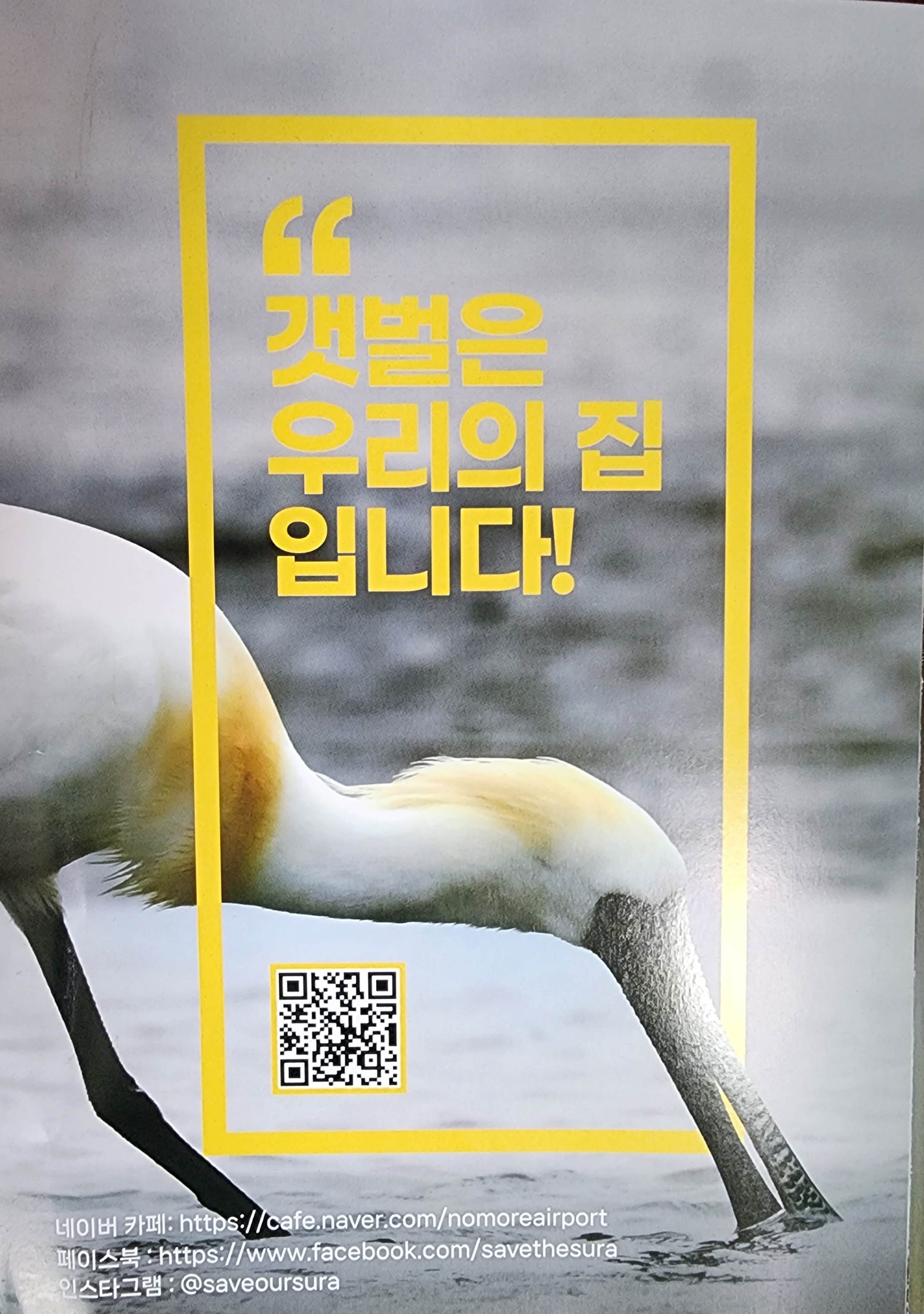 " 잼버리대회가 열리는 해창갯벌 또한 해수유통확대를 통해 가장 빠르게 갯벌로 복원될 수 있는 곳이었음에도 불구하고, 매립을 가속화하기 위해 다른 매립지역을 놔두고도 불법적으로 농지관리기금을 전용하여 잼버리 부지로 매립해버렸습니다. 더구나 현재 새만금에서 가장 중요한 핵심 생태지역이자 만경수역의 마지막 갯벌인 '수라'갯벌을 매립하여 새만금신공항을 지으려 하고 있습니다."