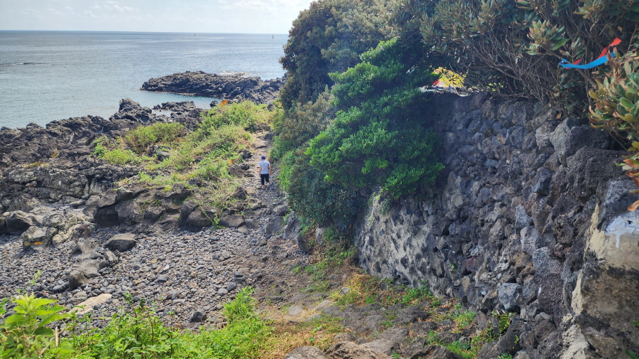 손으로 일일이 돌을 골라 만든 '일강정 바당올레'는 더 가까이 자연을 경험할 수 있는 구간이다. (올레 소개)