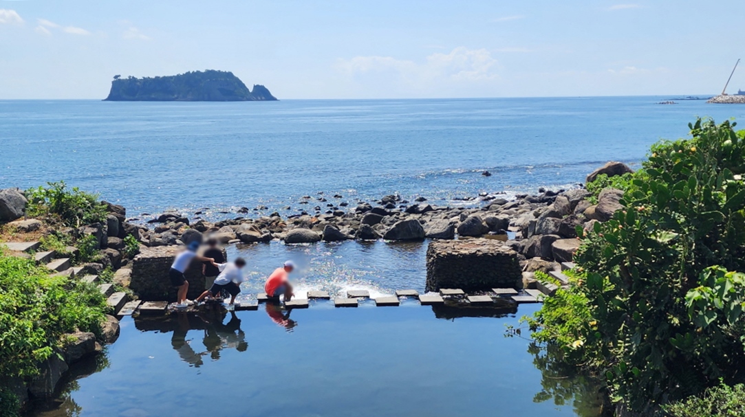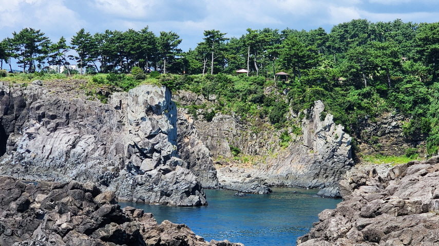 - 남성대에서 내려와 외돌개 주차장을 지나 선녀탕으로 간다.