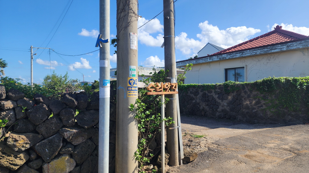 - 마을을 지나며 뜨거운 햇볕에 지쳐갈 즈음. '화장실과 시원한 물을 부담없이 사용하라는 식당(돈사돈 월정점)의 이 간세 글귀가 너무도 고마워서, 들어가 화장실 사용을 하고, 그늘에서 잠시 쉬었다. 고마운 마음을 블러그에 대신 전한다. "감사합니다~"