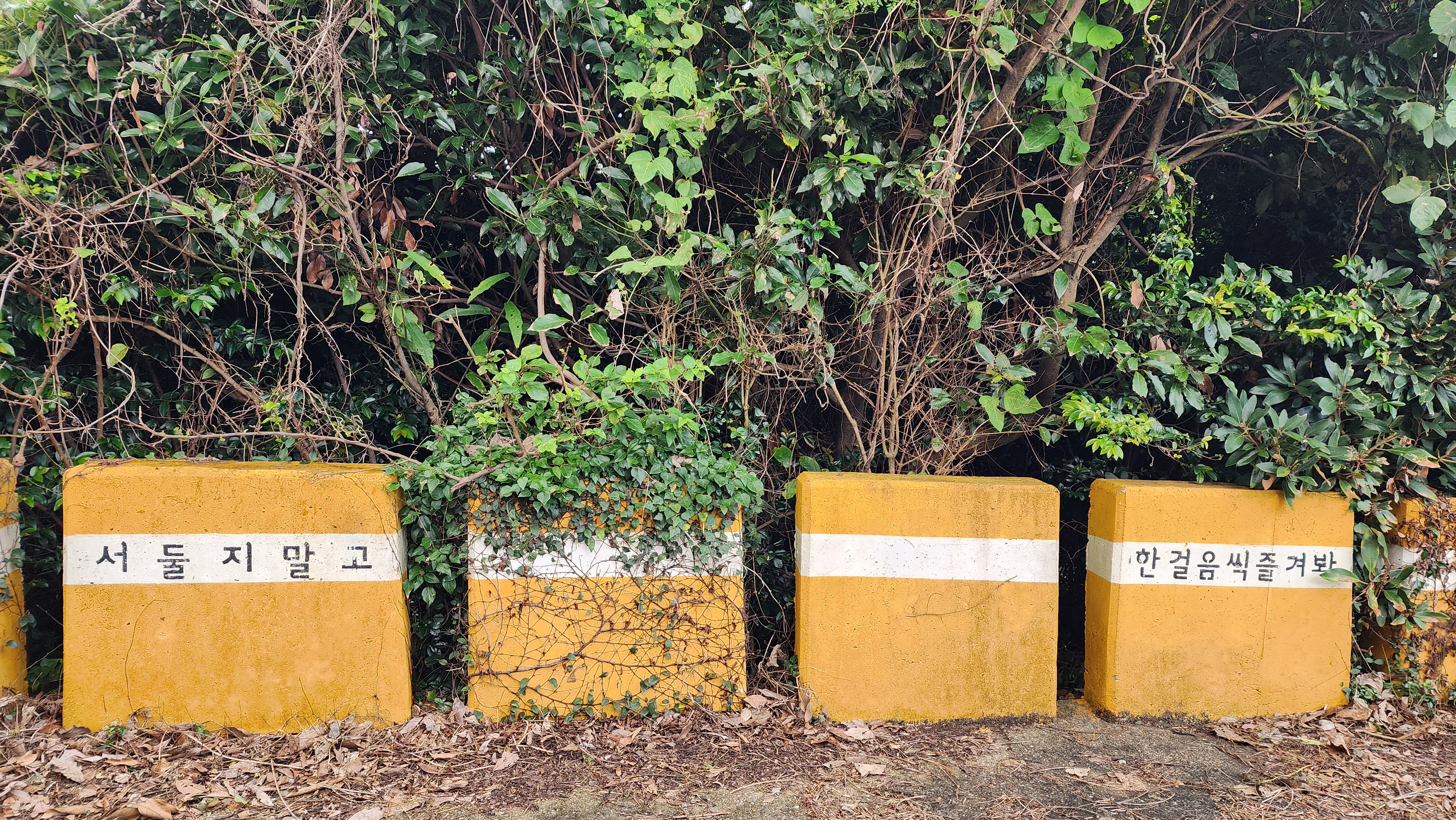 - 시작점에서 올레표식기를 따라 도로가를 걸어 무수천 입구로 간다.