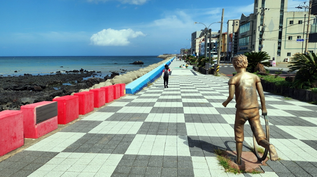 - 이호테우 해수욕장을 지나 다음 목적지(도두봉)로 도로를 따라 걷는다.