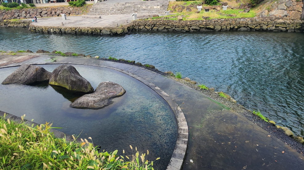 - 우린 순방향으로 진행하여 동문시장, 오몌기떡 원조 떡집에서 떡을 사서 가다가 점심으로 먹었다.