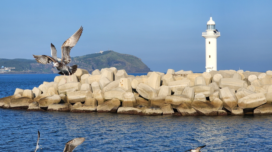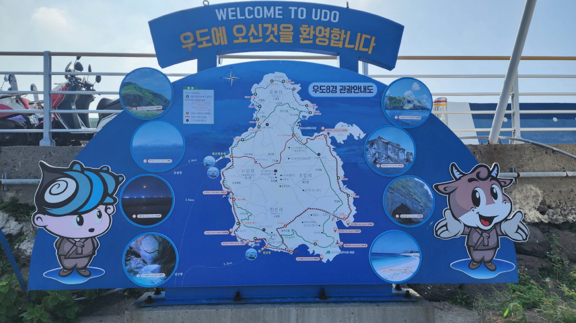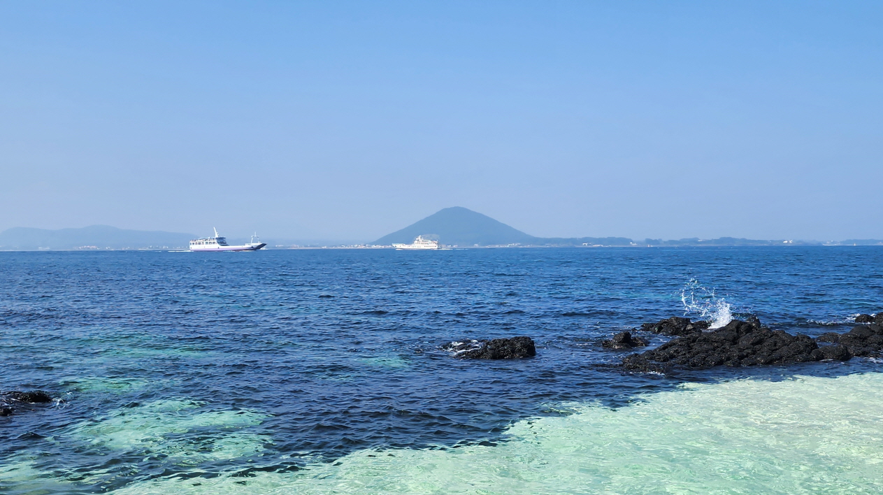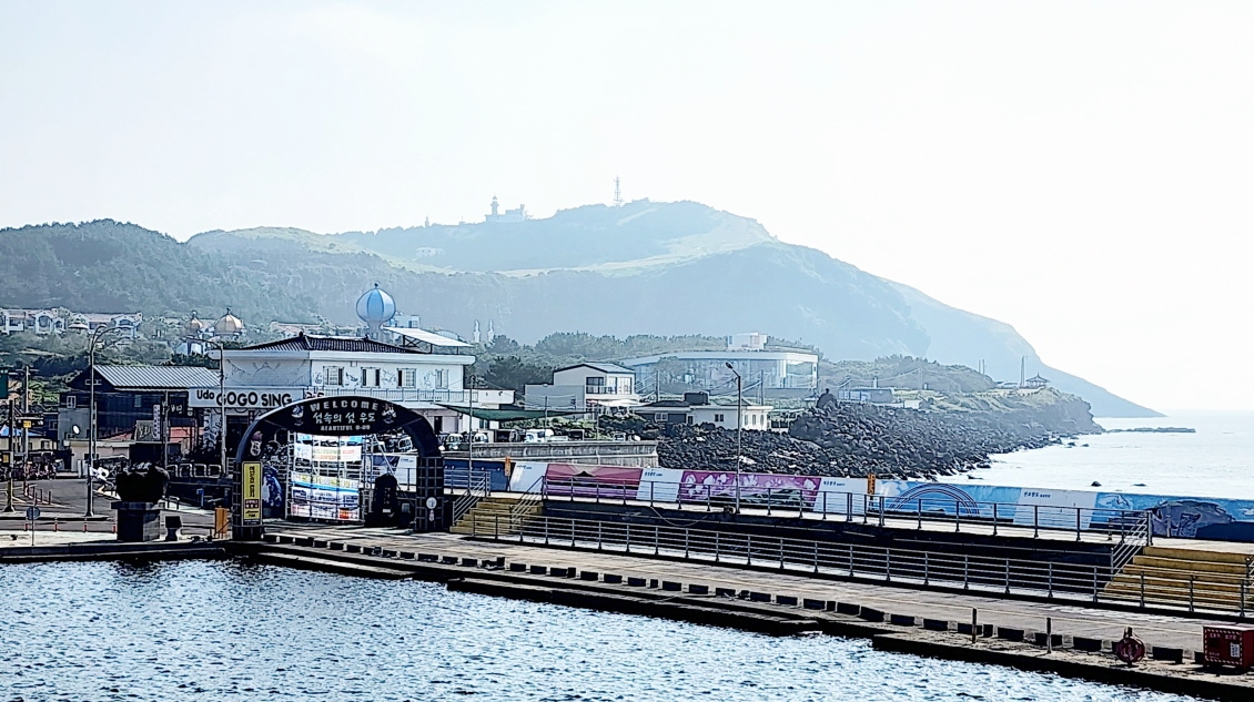 - 성산항에서 출발하니 성산일출봉이 바로 앞에 보인다. 우도는 성산항에서 바로 앞에 있는 듯이 가까이 있어서 배가 출발하자마자 양쪽이 다 가까이 보인다. 가다보니 배에서 우도 하우목항도 보인다. (왼쪽 네번째 사진)