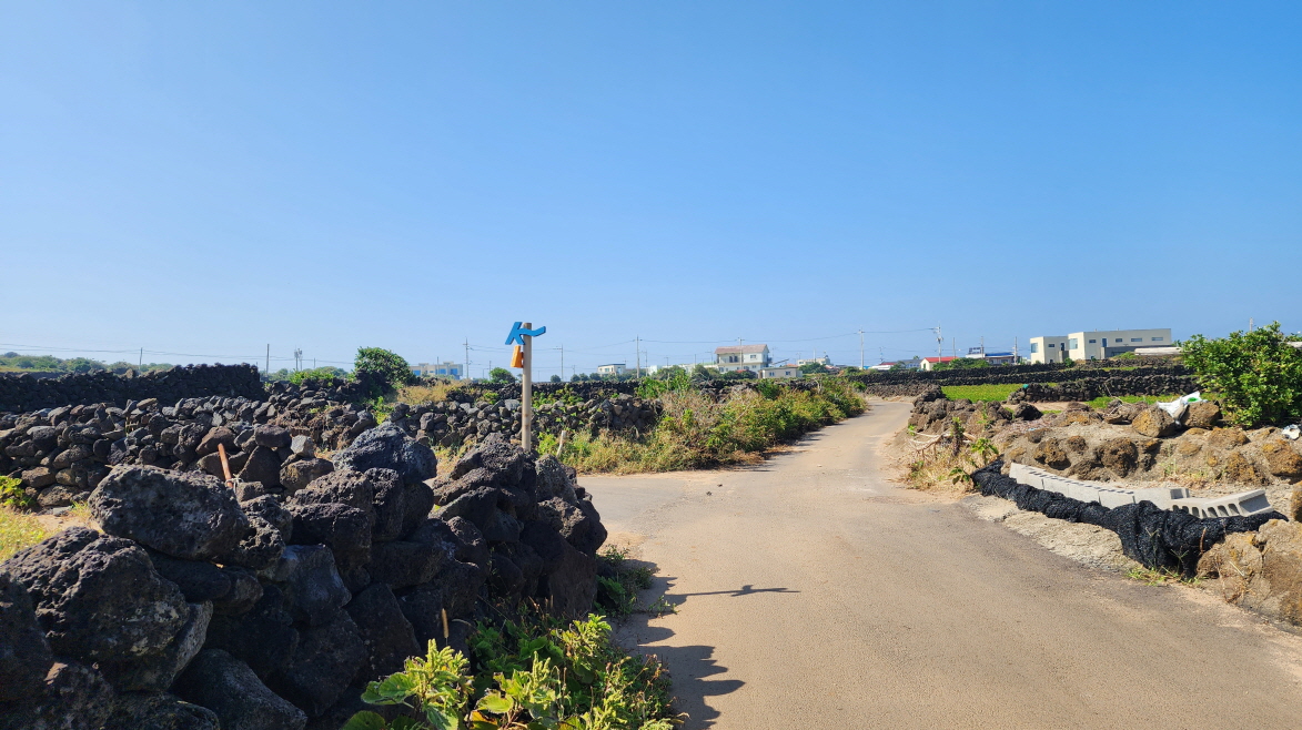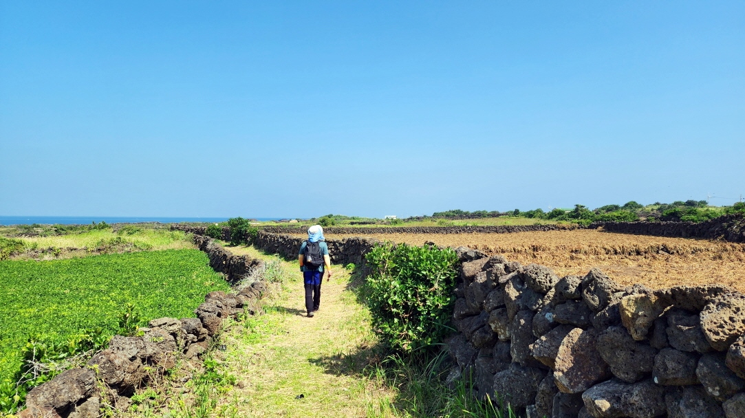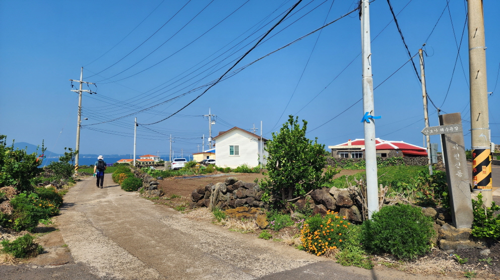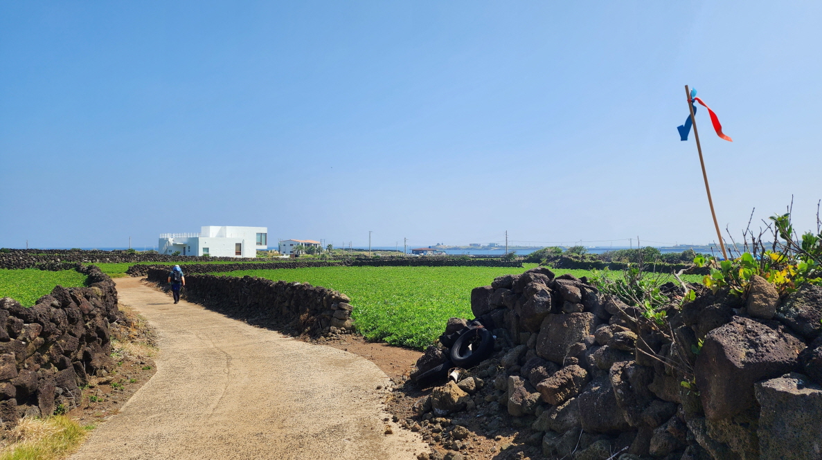- 해안도로를 따라 한참을 걷는다. 땅콩마을에서 다시 밭길로.