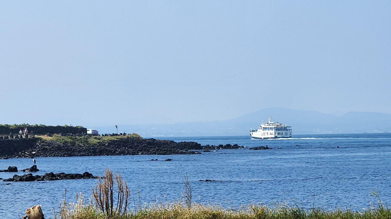 - 성산항에서 우도까지 15분 정도 걸리므로, 그냥 갑판에 서 있어도 금방 도착한다.