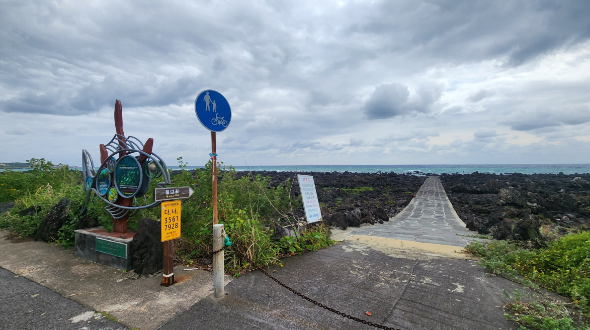 - 눈부신 백사장에서 시작되는 아름다운 해안 올레다. 해녀 탈의장을 지나 바다의 앞부분이 가느다랗다고 하여 이름붙인 '가는개'를 건너면 어촌 마을 세화 2리로 접어든다. 세화2리의 옛이름, 가마리의 해녀 올레는 '세계최초의 전문직여성'으로 불리는 제주 해녀들이 바닷가로 오르내리던 길이다. 이어지는 바다 숲길은 제주올레에 의해 35년만에 복원되었다. 이 길을 만들 때 해병대 장병들이 도와주어서 '해병대길'이라고도 불린다. (올레 소개)