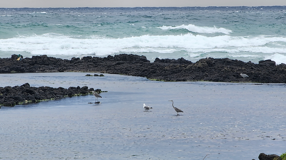 - 깜짝 놀라서 다시 바라보니, 아마도 내쪽에서 보기에 파도가 사람을 삼킨 것처럼 보이고, 실제는 사람 보다 뒤에서 쳤나보다, 멀쩡히 잘 서있다. ^^::)