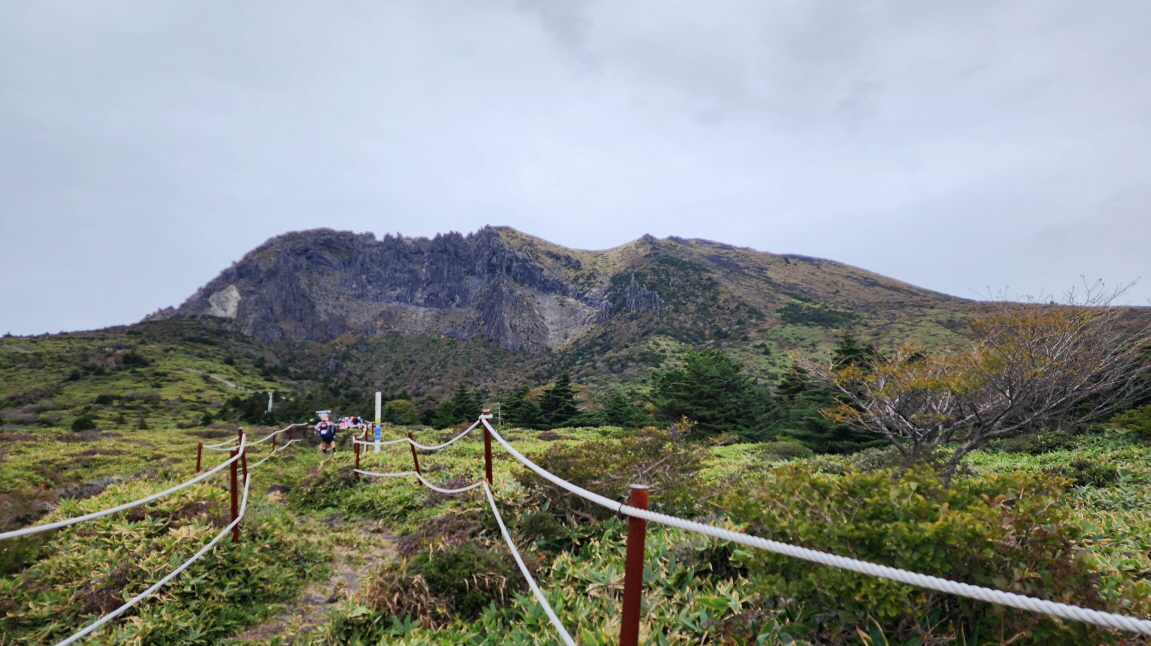 영실 등산로 입구.입구의 길은 한라산둘레길과 같이 조릿대 길.영실에서 남벽까지 고도와 길이 안내판오늘은 '트레일러닝대회'가 있는 날이라 선수들이 계속 치고 지나간다. 길 비켜주기 바쁘다. 화이팅!!!이제 가파른 길의 시작이다.뛰어오는 소리에 뒤 돌아 보니 이렇게 가파른 길도 뛰어올라온다. 대단한 사람들이다. 와우!!!영실 기암괴석, 만물상이 보이기 시작한다.기암괴석과 만물상들.(영실기암과 오백나한)병풍바위뒤돌아 보니, 우와,,, 탄성이 절로 나온다.해발 1500을 지난다.병풍바위 옆도 지나고뒤 돌아 보며 사진을 찍느라 정신이 없다. ㅎ ㅎ멀리 보이는 저 작은 섬을 기억해두세요~~~한라산이 품어내 많은 오름들우와, 이 높은 곳을 아직도 뛸 수 있다니 체력이 대단하다.기념 사진도 찍고,수많은 계단을 오르고또 오르고..(해발 1600)내려다보이는 풍경이 점점 작아진다.한라산의 꽃저편의 구멍난 바위가 신기하여, (구멍난 바위를 선두로 하여 바위들이 산을 타고 꿈틀대며 오르고 있는 것 같지 않은가!)주목지구이제 구름이 내 발 저 아래에 있다. ㅎ ㅎ다 올라왔다. 넓게 펼쳐진 들판.백록담을 품은 한라산 정상이 보인다.전망대를 향해.같은 사진 다른 느낌?전망대 오르는 길전망대를 내려 윗세오름으로 가는 길윗세오름 대피소1시 30분부터 돈내코 방향 입산을 통제한다는 알림판. (여기 대피소안에서 아점을 먹고, 다시 출발한다.)남벽가는길선수들이 윗세오름까지 오르막은 열심히 뛰어 올라가더니, 내리막은 다들 걸어간다. 신기,,, 체력이 없나?..한라산 정상부는 바라보는 방향에 따라 정말 다양한 모습으로 보인다. 바위로 된 한라산 화구벽.아까 보이던 그 섬이 이쪽 방향에서 또 내려다 보인다. 음...신기!!!남벽, 웃방아오름. 그리고 방아오름샘백록담 남벽 끝의 바위가 이쪽에서 바라다 보니 용이 승천하려는 듯한 모습!남벽분기점 전망대남벽대피소열심히 내려왔는데, 거리가 줄지 않는다. 에고...섶섬, 문섬, 새섬,범섬풩궤 대피소 (전망대와 화장실 가는 계단)전망대에서 바라본 풍경펑궤를 지나 내려오니 이제 풍경이 완전히 달라졌다. 거의 다 내려왔나 보다.돈내코의 소나무 숲 지대돈내코 방향은 바닥이 거의 돌길이라, 걷기 쉽지 않다.해발 1000m여기는 적송지대길이 돌길을 조금 벗어나, 흙길이라 걷기 편안해졌다.사람들이 세워둔 사람모양의 나무도막과 그위에 얼굴처럼 올려놓은 돌한라산둘레길 동백길종점, 수악길 시작인 지점과 만난다.